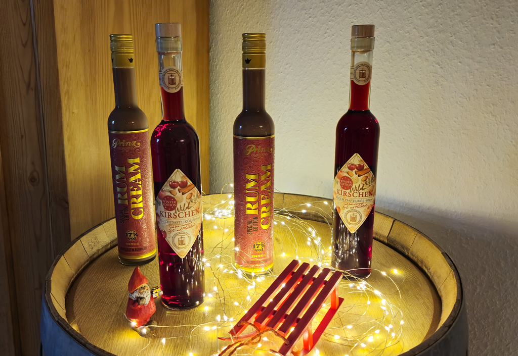 Entdecken Sie jetzt unseren neuen leckeren Cream-Likör mit Rum oder den altbekannten Klassiker »Wild Kirschen Likör« in der Winter Edition mit weihnachtlichen Mandeln und Zimt.